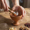 Fünf Harze. Jede Stimmung. Jade zum Erheben. Amber zum Wärmen. Myrrhe zum Landen. Drachenblut zum Reinigen. Hojari-Mischung für die Tage dazwischen. Dir wird nie fehlen, wonach du greifen kannst.