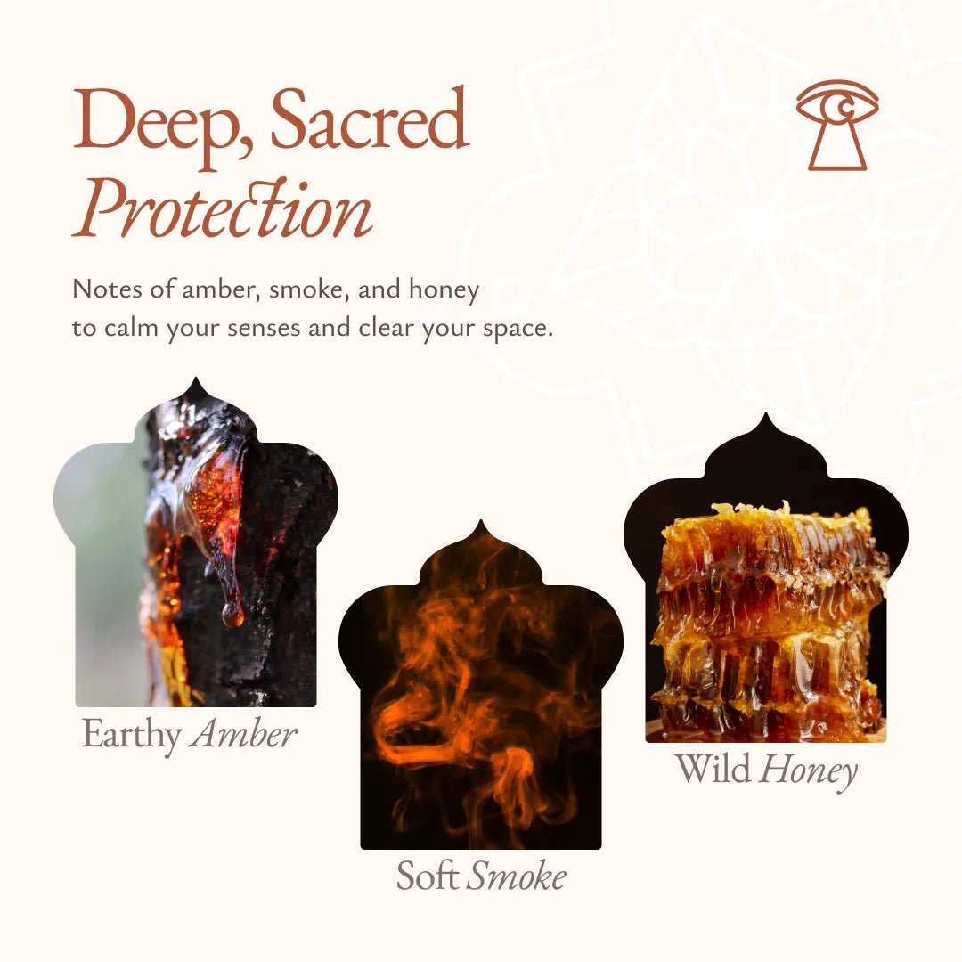 Noir’s aroma is grounding and sacred - earthy amber, soft smoke, and resin-rich warmth with faint notes of wild honey. It feels like stepping into a quiet forest at night.