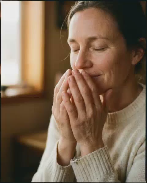 One touch on your palms. Cup over your nose. Three slow breaths. Something in you settles.